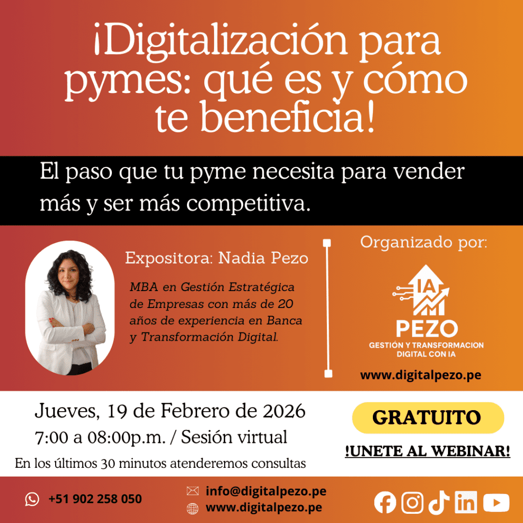 Te invito al webinar GRATUITO sobre Transformación Digital para pymes en el Perú.